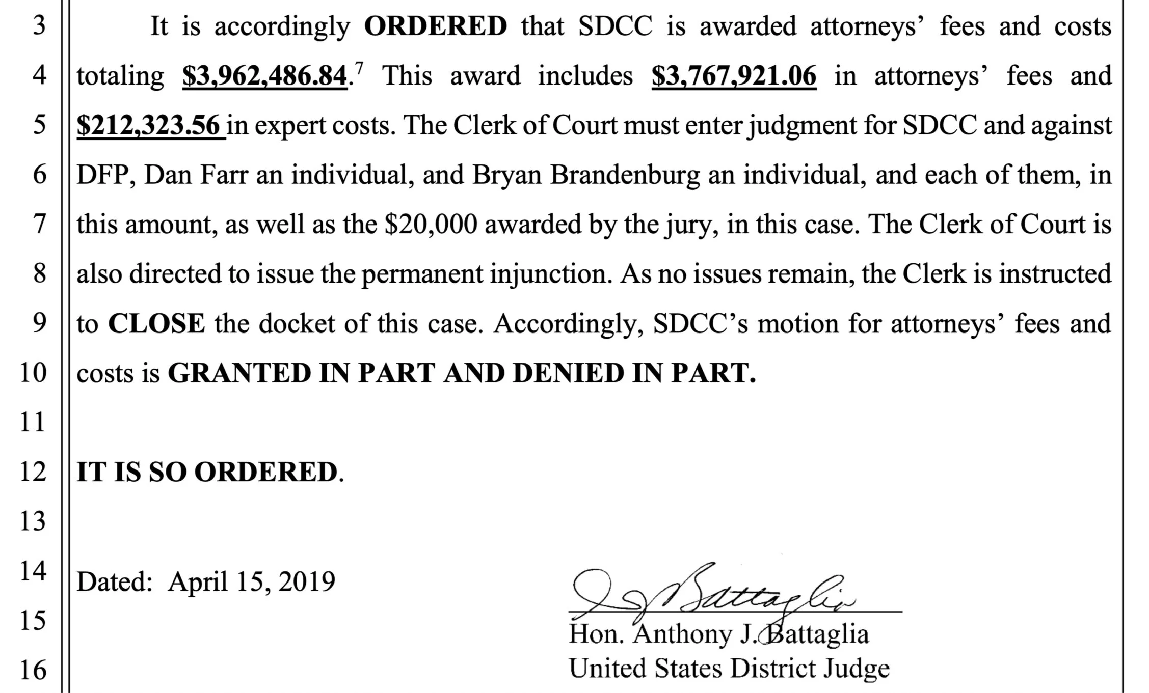 While SDCC was seeking $12 million in damages from Salt Lake Comic Con, which is laughable at best, a federal judge only ordered SLCC to pay $20k in damages regarding the Comic Con trademark. But the judge also ordered SLCC to pay some hefty attorney fees. The judge initially awarded SDCC “just” $3.7 million in attorney fees. SDCC initially asked for a total of $5.2 million ($4.99 million plus $243k for consultant fees), but ended up being awarded the $3.7 million plus $212k in fees for a total of $3.9 million. SLCC appealed the large attorney fee amounts and on April 20, 2020 a federal judge upheld the $3.7 million but allowed the $212k to be vacated.